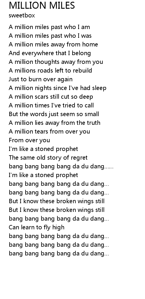 | [00:15.10] | A million miles past who I am |