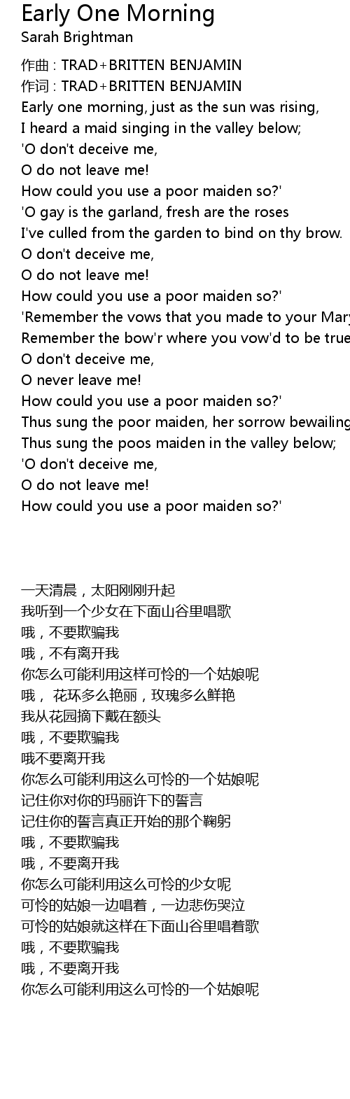 | 歌曲 | Early One Morning |