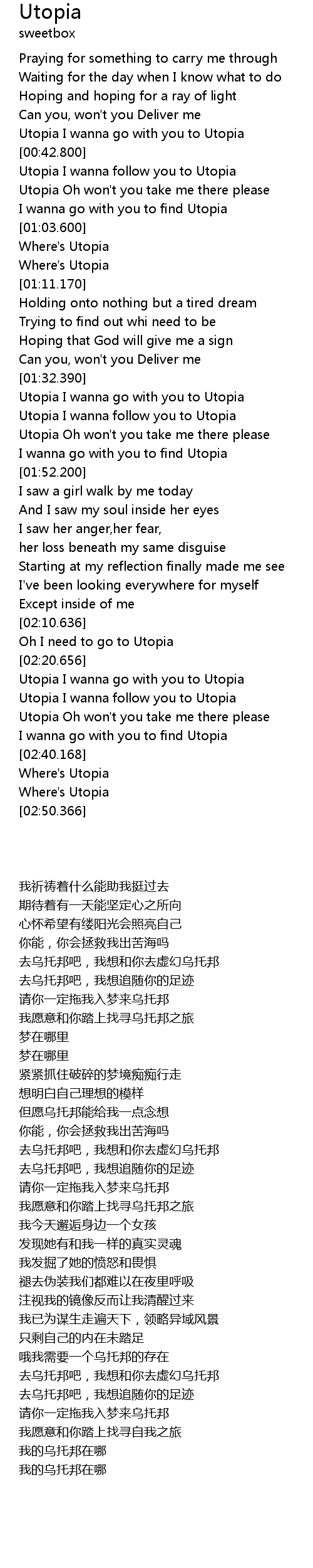 | [02:31.797] | Utopia Oh won' t you take me there please |