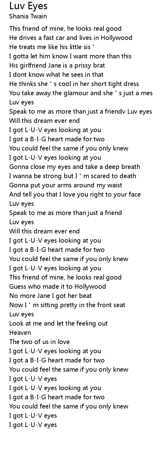 | [00:53.51] | Speak to me as more than just a friendv Luv eyes |