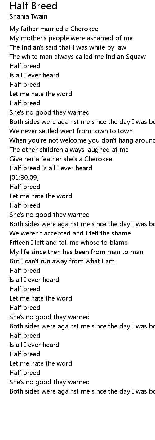 Half breed Is all I ever heard |