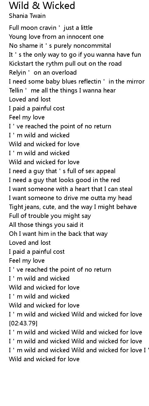 | [03:01.35] | I m wild and wicked Wild and wicked for love I m wild and wicked Wild and wicked for love |