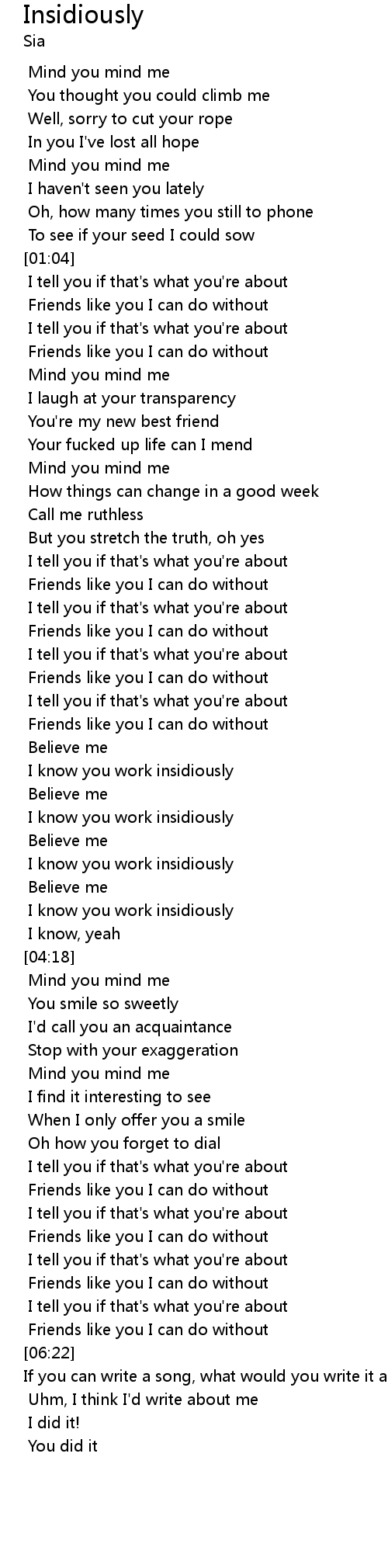I know you work insidiously |