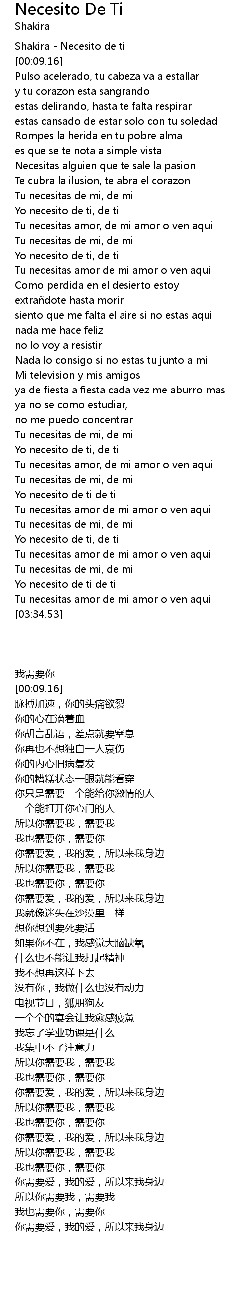 | [03:19.29] | Yo necesito de ti de ti |