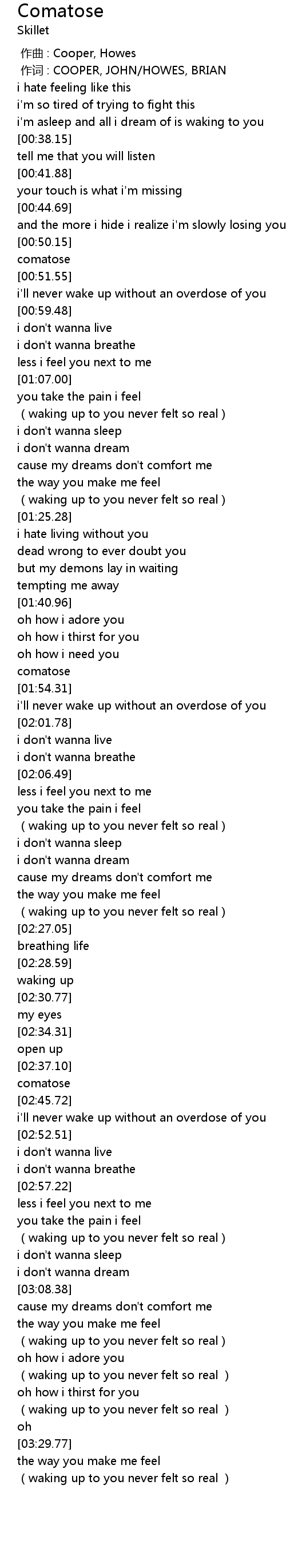 | [02:44.70] | comatose |