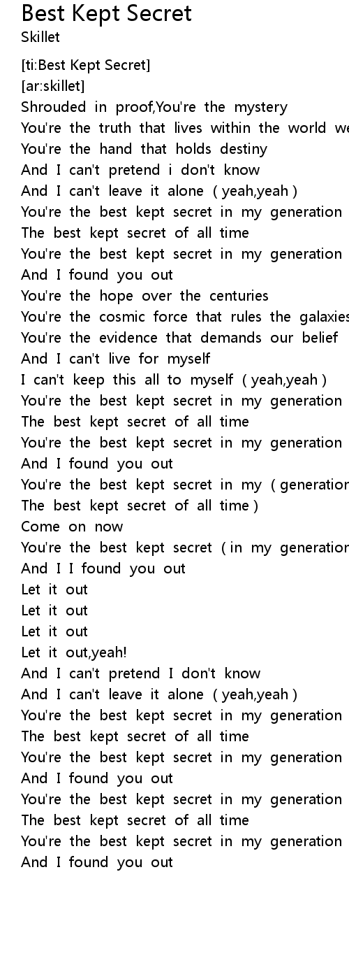 | [02:21.415] | You're the best kept secret (in my generation) |