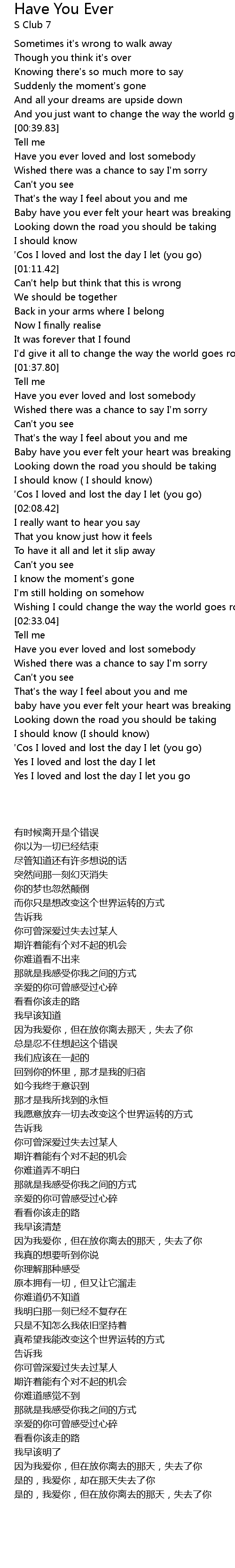 | [03:06.77] | Yes I loved and lost the day I let you go |