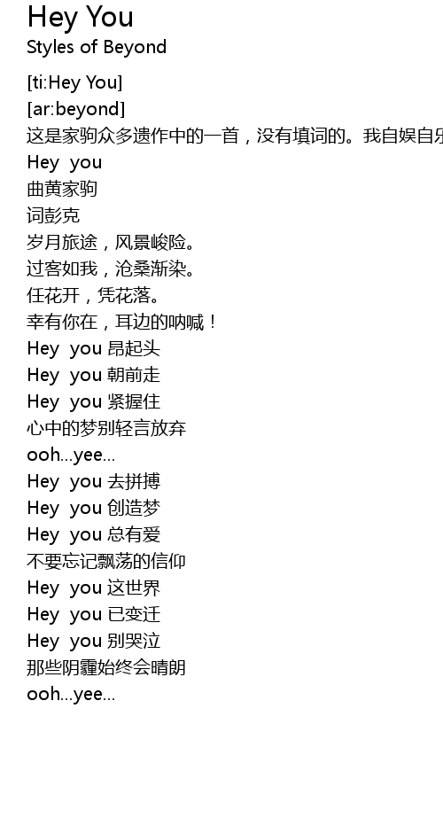 | [01:52.709] | Hey you zǒng yǒu ài |