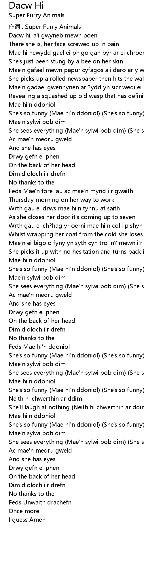 | She sees everything (Mae'n sylwi pob dim) (She sees everything) | |