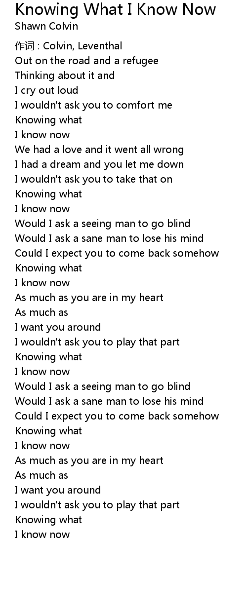 | 歌曲 | Knowing What I Know Now |