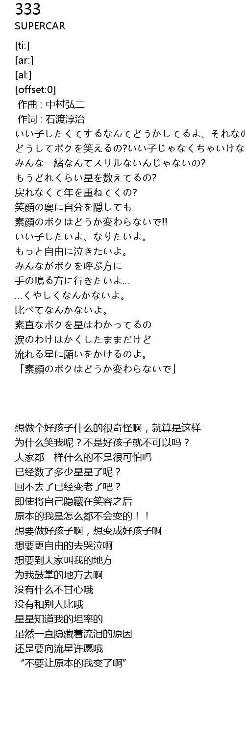 | [02:09.07] | 「素顔のボクはどうか変わらないで」 |
