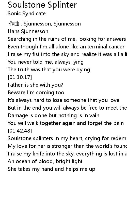 | [01:52.17] | Soulstone splinters in my heart, crying for redemption |