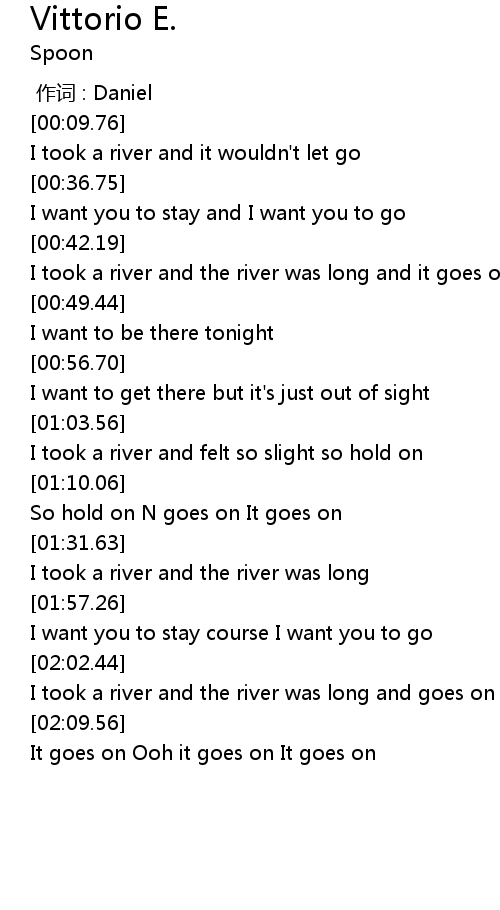 | [02:04.25] | I took a river and the river was long and goes on |