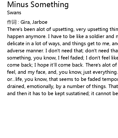 | There' s been alot of upsetting, very upsetting things that I can' t allow to happen anymore. I have to be like a soldier and march away. ' Cause I' m very delicate in a lot of ways, and things get to me, and effect me... in a very adverse manner. I don' t need that don' t need that. I feel now like minus something, you know, I feel faded I don' t feel like I' m all here. I think it' ll come back I hope it' ll come back. There' s alot of color missing, from the way I feel, and my face, and, you know, just everything. There' s some kind of zest, or... life, you know, that seems to be faded temporarily, because I' ve been so drained, emotionally, by a number of things. That has to slowly build back up, and then it has to be kept sustatined it cannot be allowed to be diminished. |