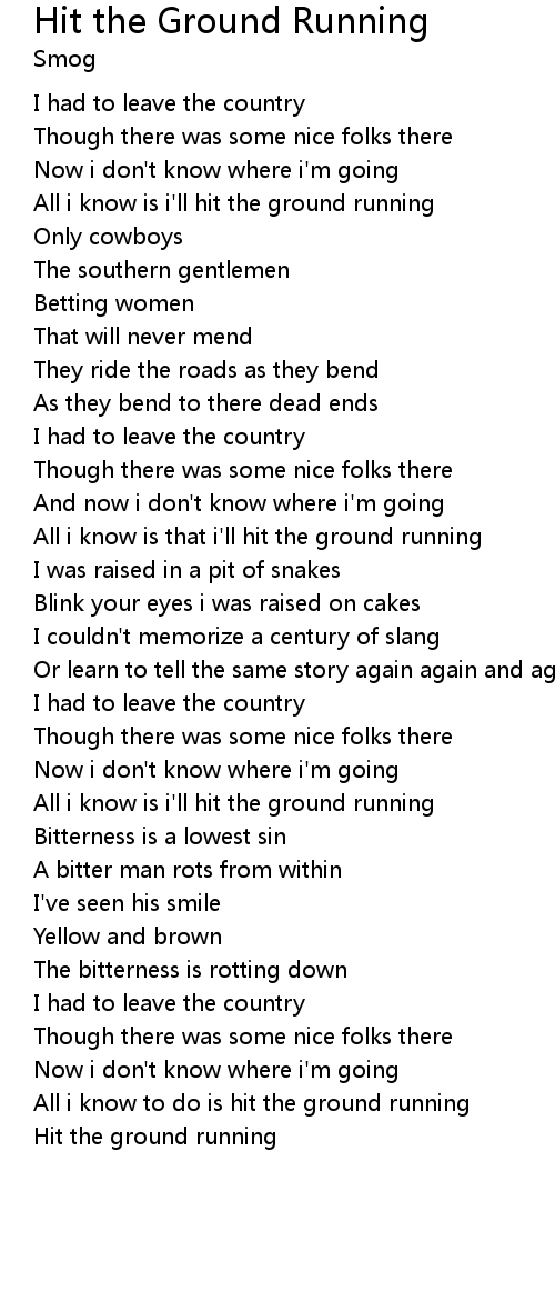 All i know to do is hit the ground running |