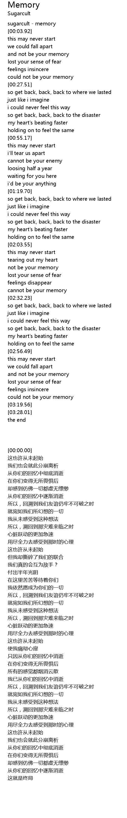sugarcult - memory |