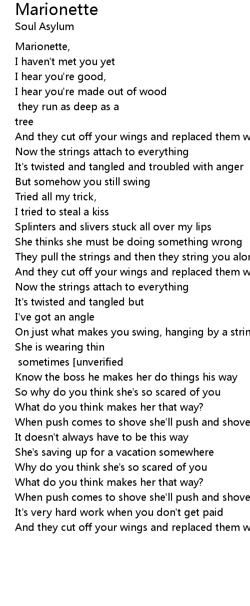 And they cut off your wings and replaced them with strings |