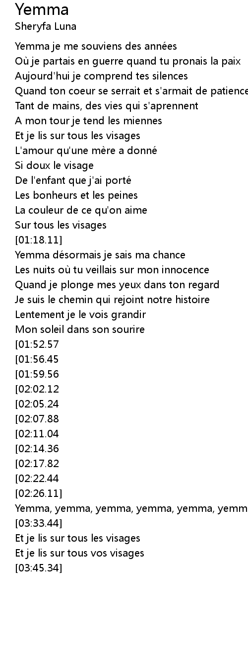 | [01:20.28] | Yemma désormais je sais ma chance |