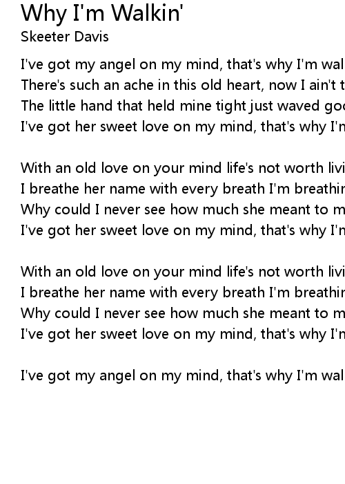 I've got her sweet love on my mind, that's why I'm walkin' |