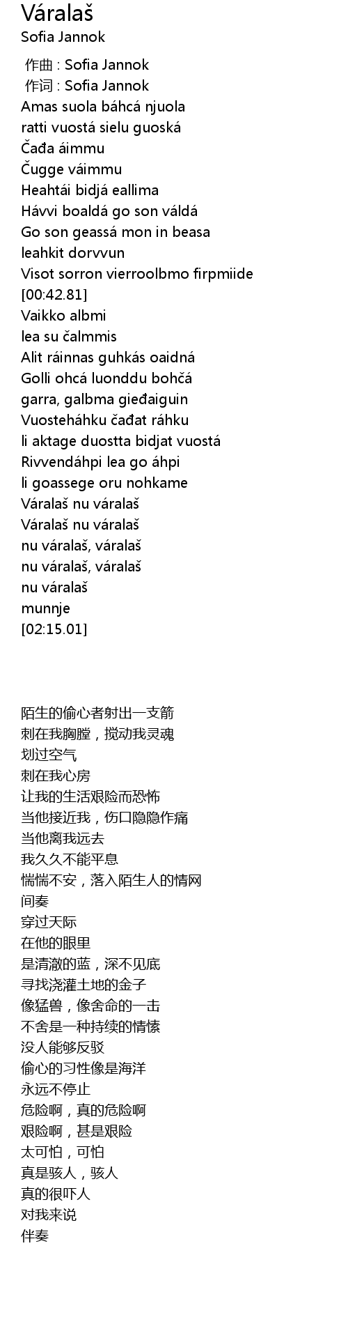 | 歌曲 | Váralaš |
