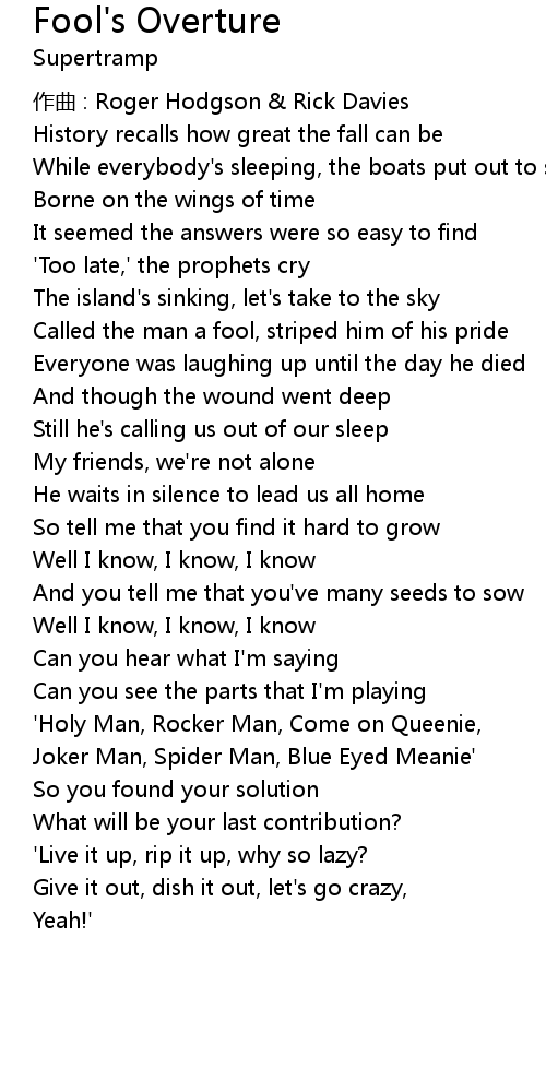 | 作曲 : Roger Hodgson & Rick Davies | |