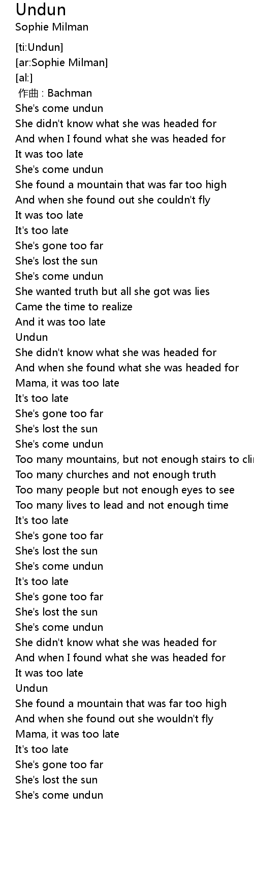 | [02:42.74] | She's come undun |