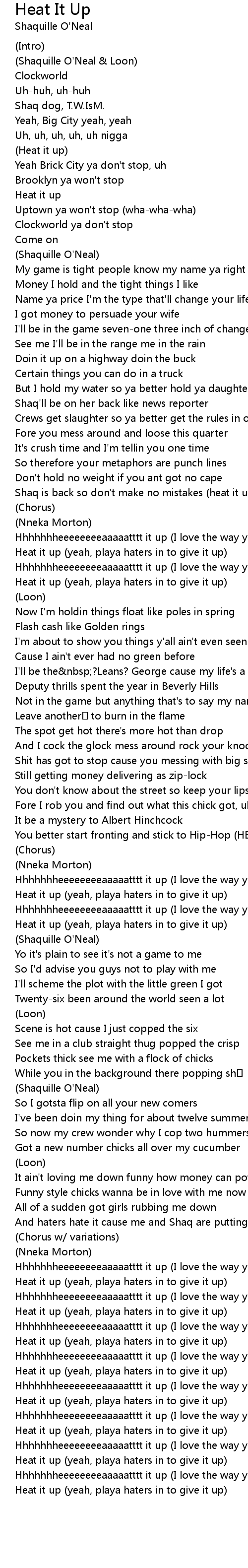 | Shaq is back so don't make no mistakes (heat it up) | |