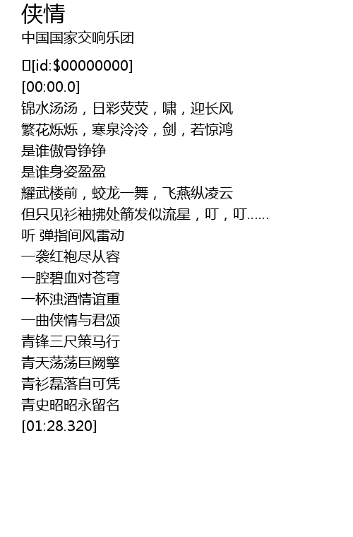 | [00:59.460] | 一曲侠情与君颂 |
