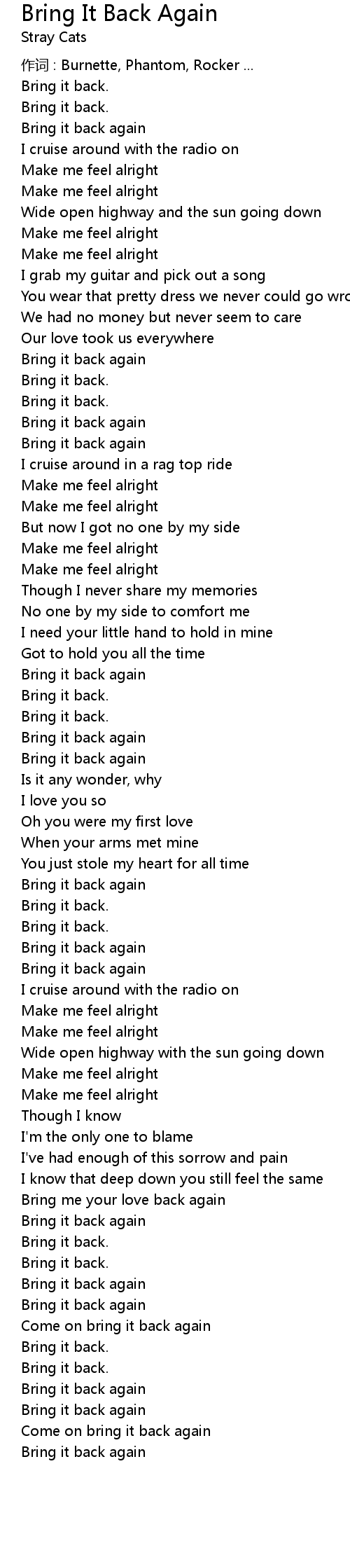 | Come on bring it back again | |