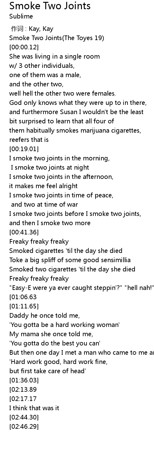 | [00:36.06] | I smoke two joints before I smoke two joints, |
