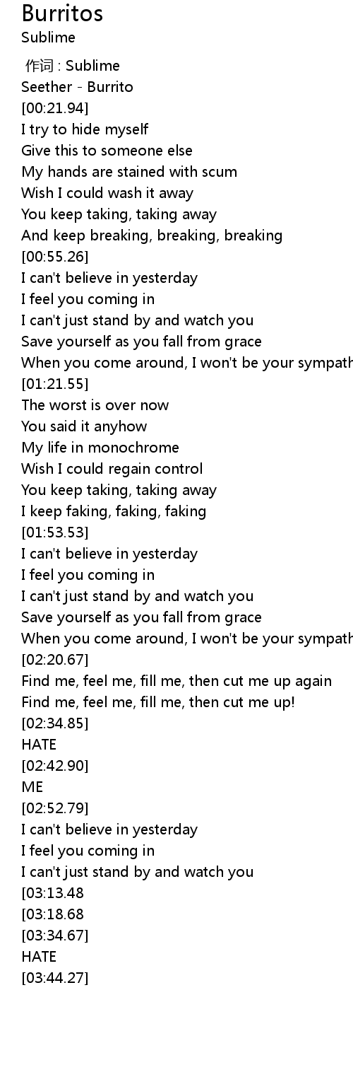 | [02:25.24] | Find me, feel me, fill me, then cut me up again |