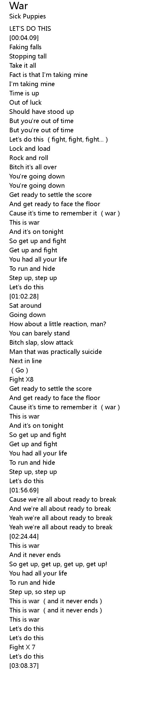 | [02:38.22] | This is war (and it never ends) |