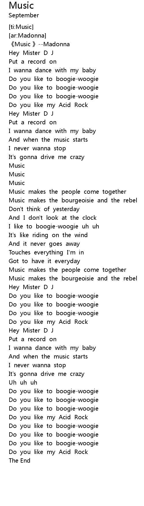 | [00:20.917] | Do you like to boogiewoogie |