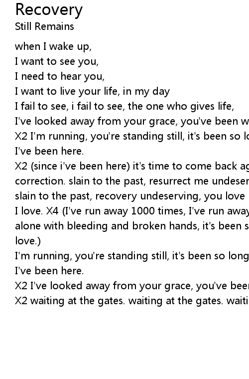 X2 (since i've been here) it's time to come back again, it's time to make correction. slain to the past, resurrect me undeserving, you love me still. slain to the past, recovery undeserving, you love me still. your love, |