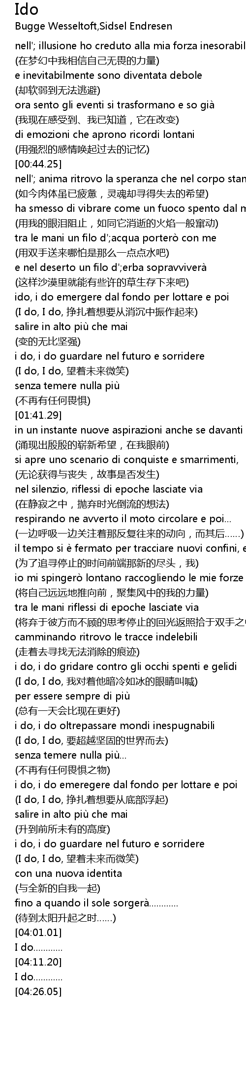 | [00:44.26] | nell' anima ritrovo la speranza che nel corpo stanco ormai |