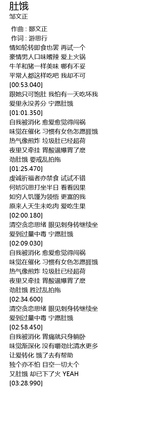 | [03:18.350] | 又肚饿 却已下了火 YEAH |