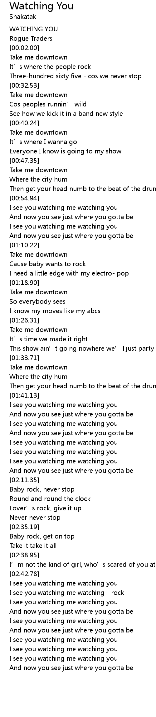 | [02:46.30] | I see you watching me watching - rock |