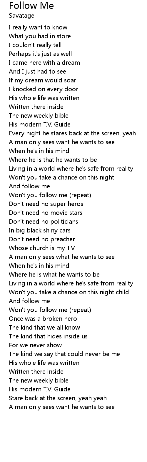 Won't you follow me (repeat)