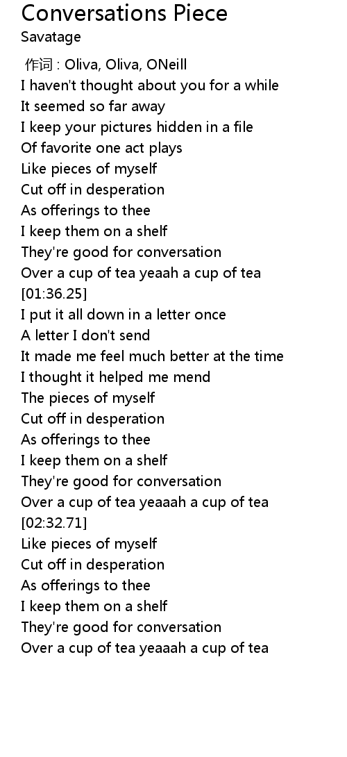 | [03:33.48] | Over a cup of tea yeaaah a cup of tea |