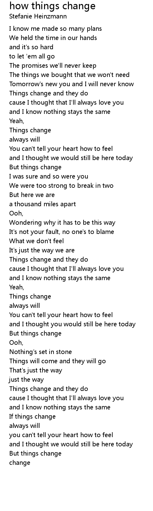 and I know nothing stays the same |