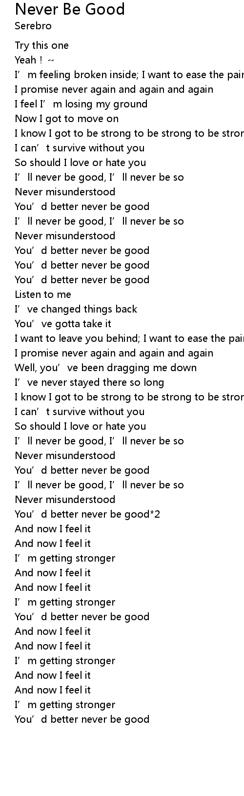 | [00:40.72] | I’ll never be good, I’ll never be so |