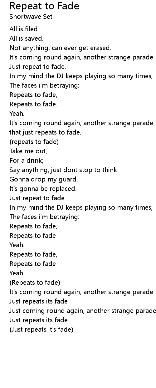 Repeats to fade, |