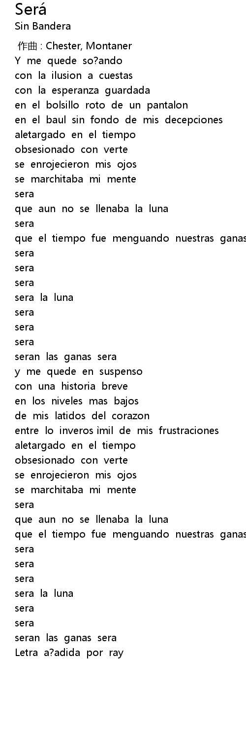 | [01:22.46] | seran las ganas sera |