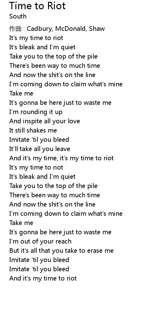 | And it' s my time, it' s my time to riot | |