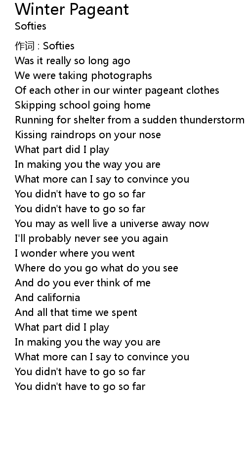 | 歌曲 | Winter Pageant |