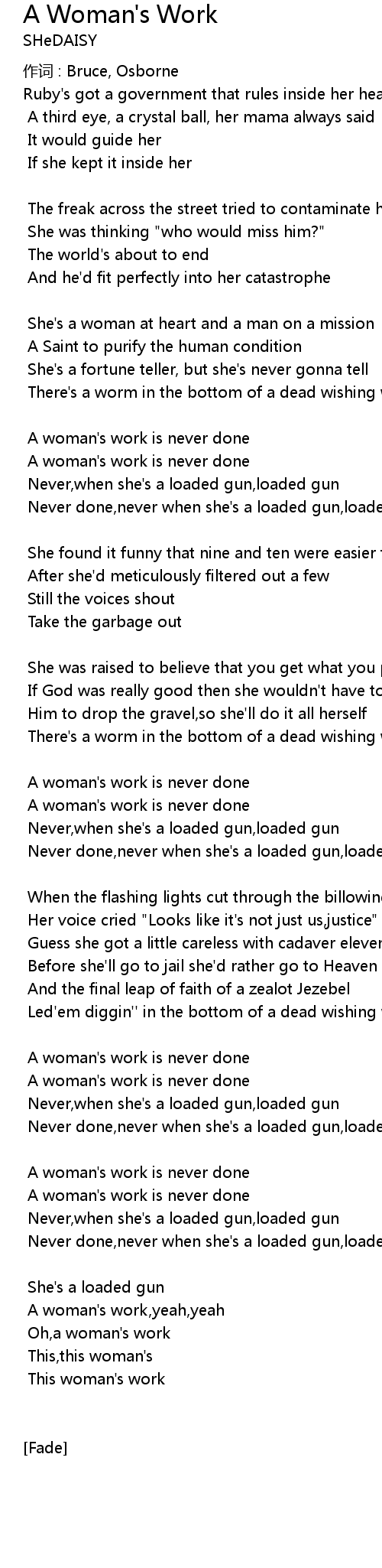 | A woman' s work, yeah, yeah | |