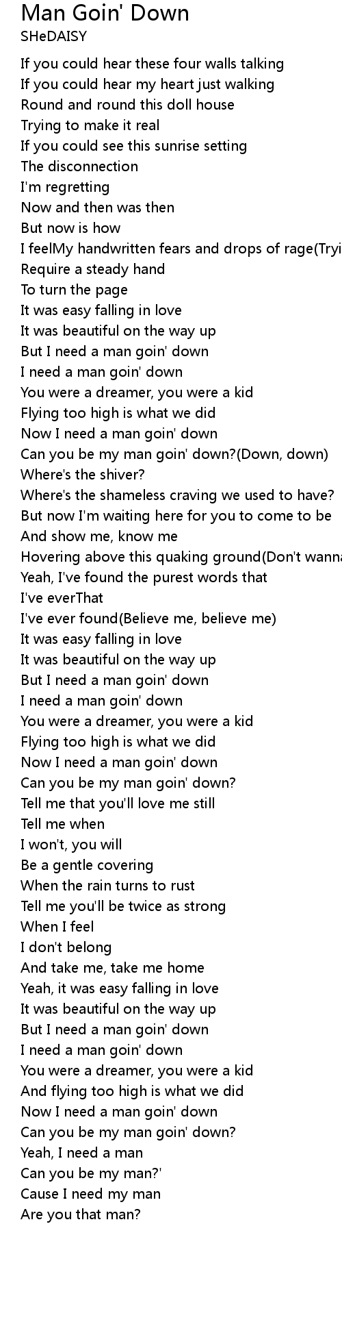 Now I need a man goin' down |