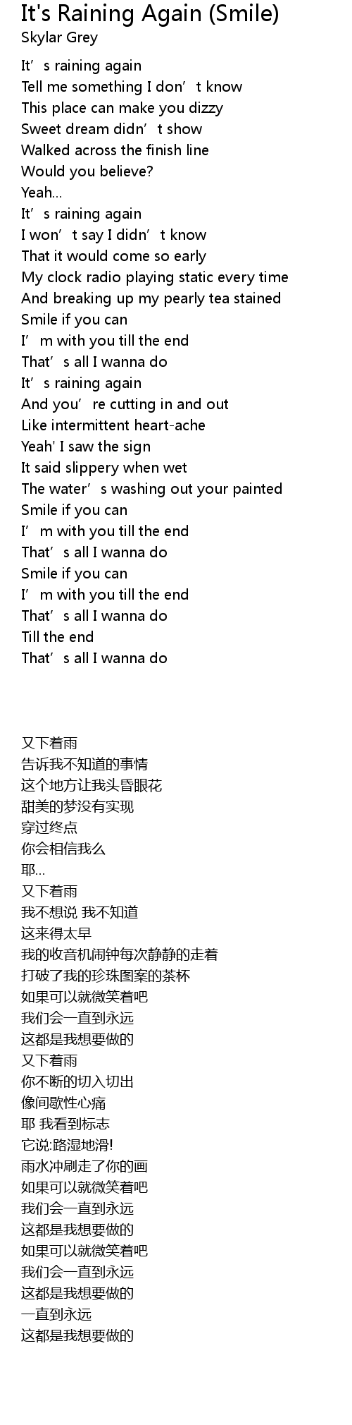 | [00:10.400] | It' s raining again |