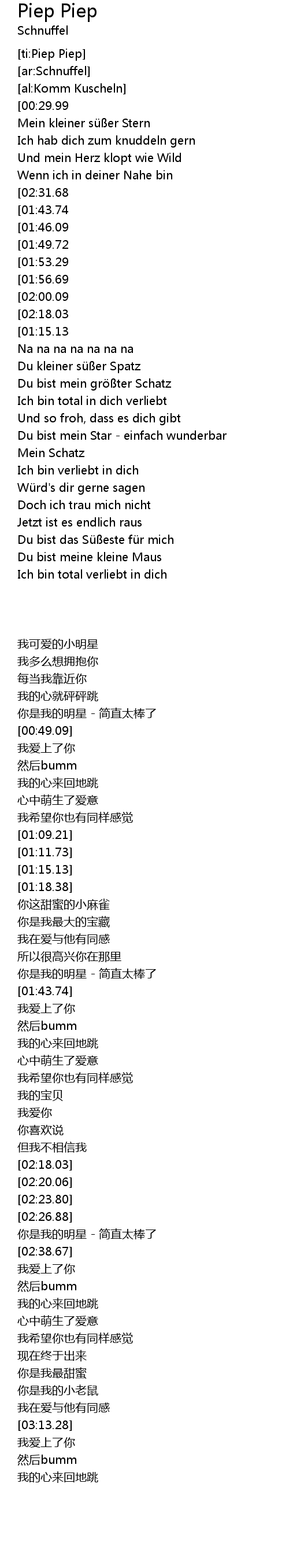 | [00:49.09][01:43.74][02:38.67][03:13.28][03:26.47] | Piep piep piep piep piep |