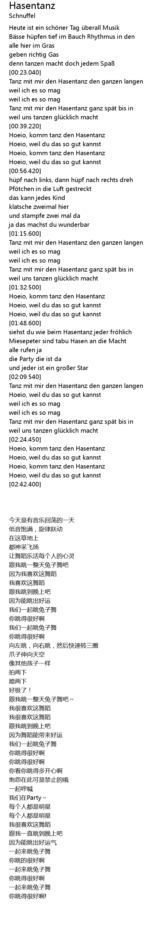 | [02:11.000] | Tanz mit mir den Hasentanz den ganzen langen |